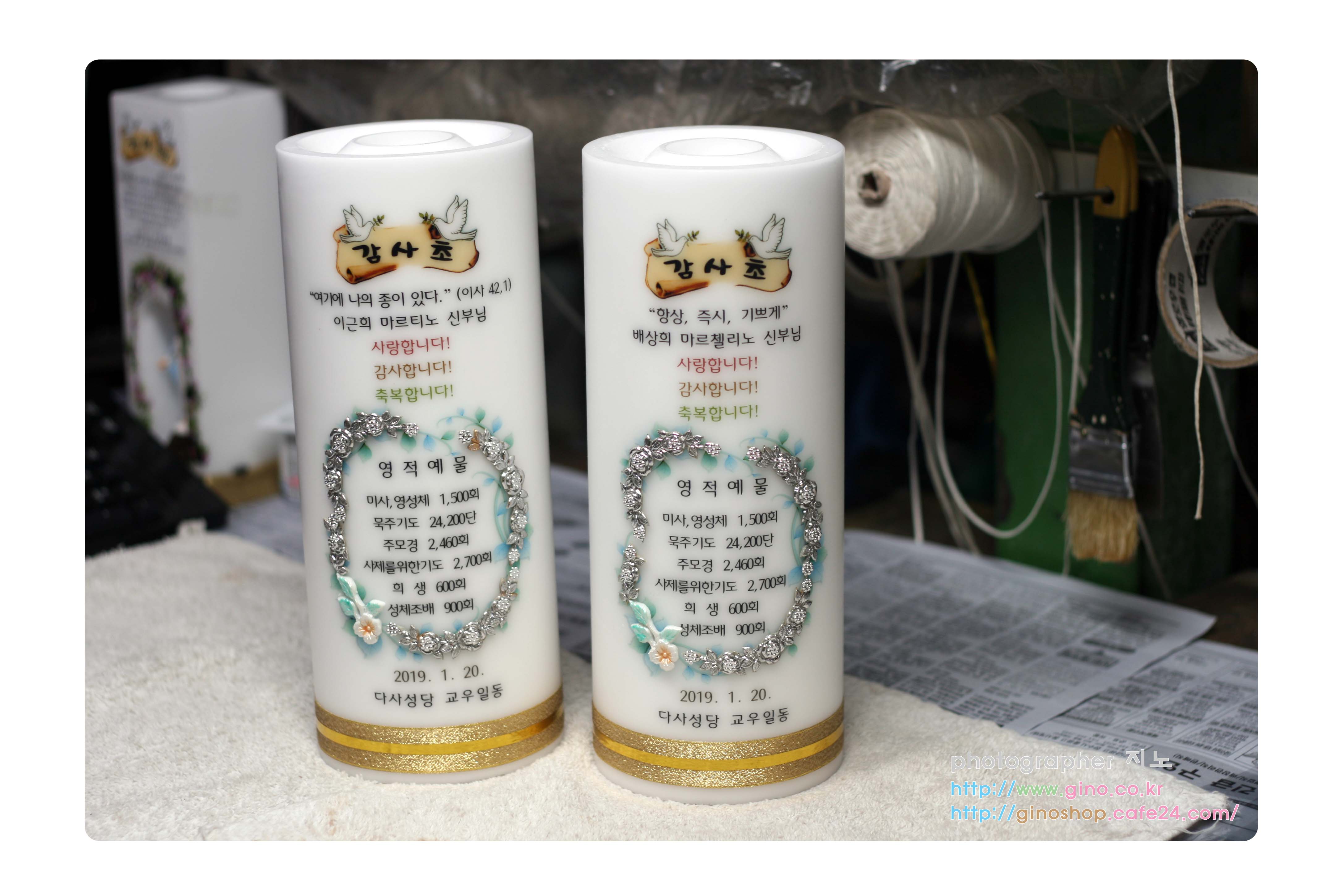 다사성당에서 이근희 마르티노 신부님과 배상희 마르첼리노 신부님께 감사의 내용을 담아 주문 제작을 하신 감사초 캔들 입니다.