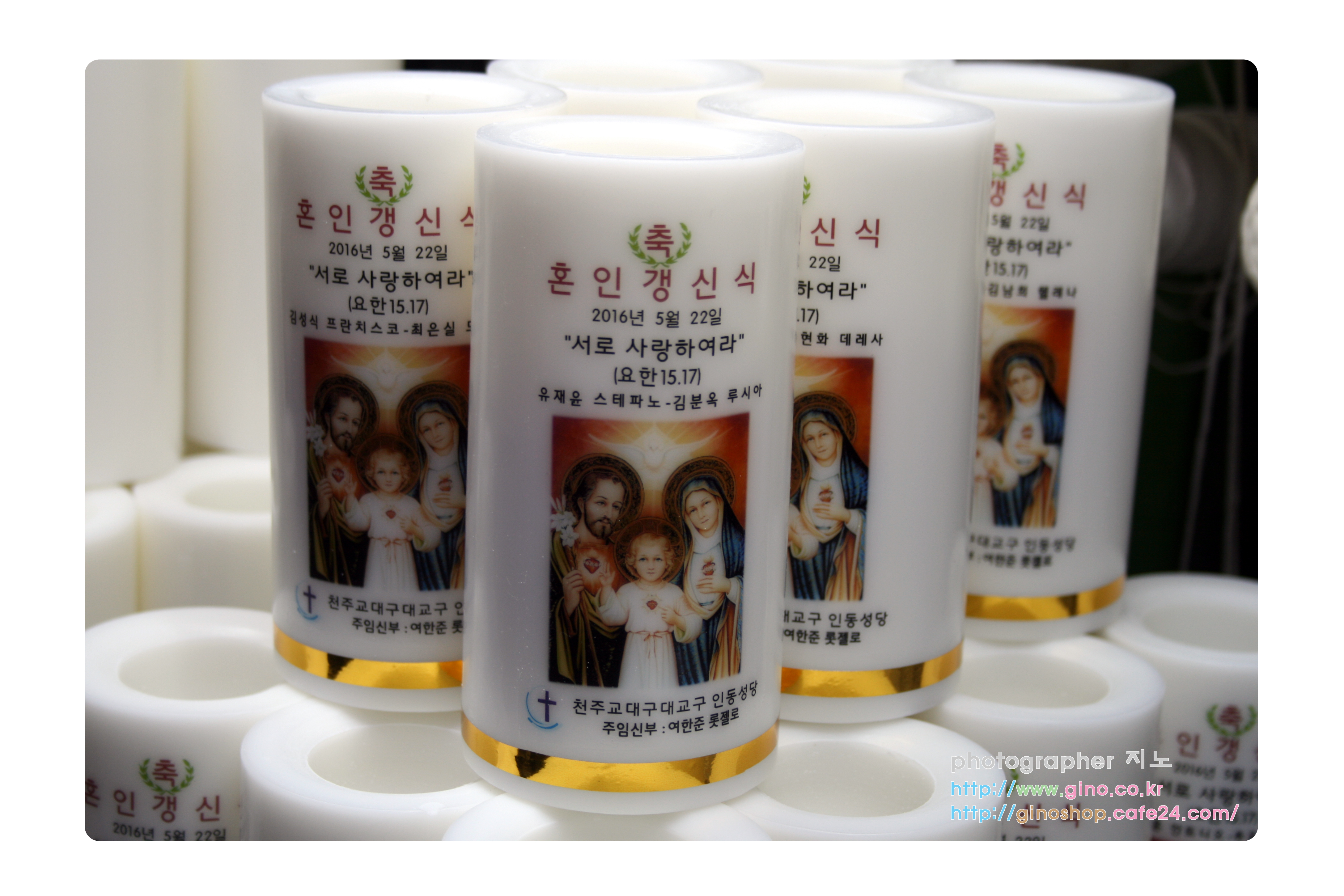 대구대교구 인동성당에서 혼인갱신 받으시는 부부 이름을 개별적으로 넣어 주문 제작을 하신 캔들 입니다.
