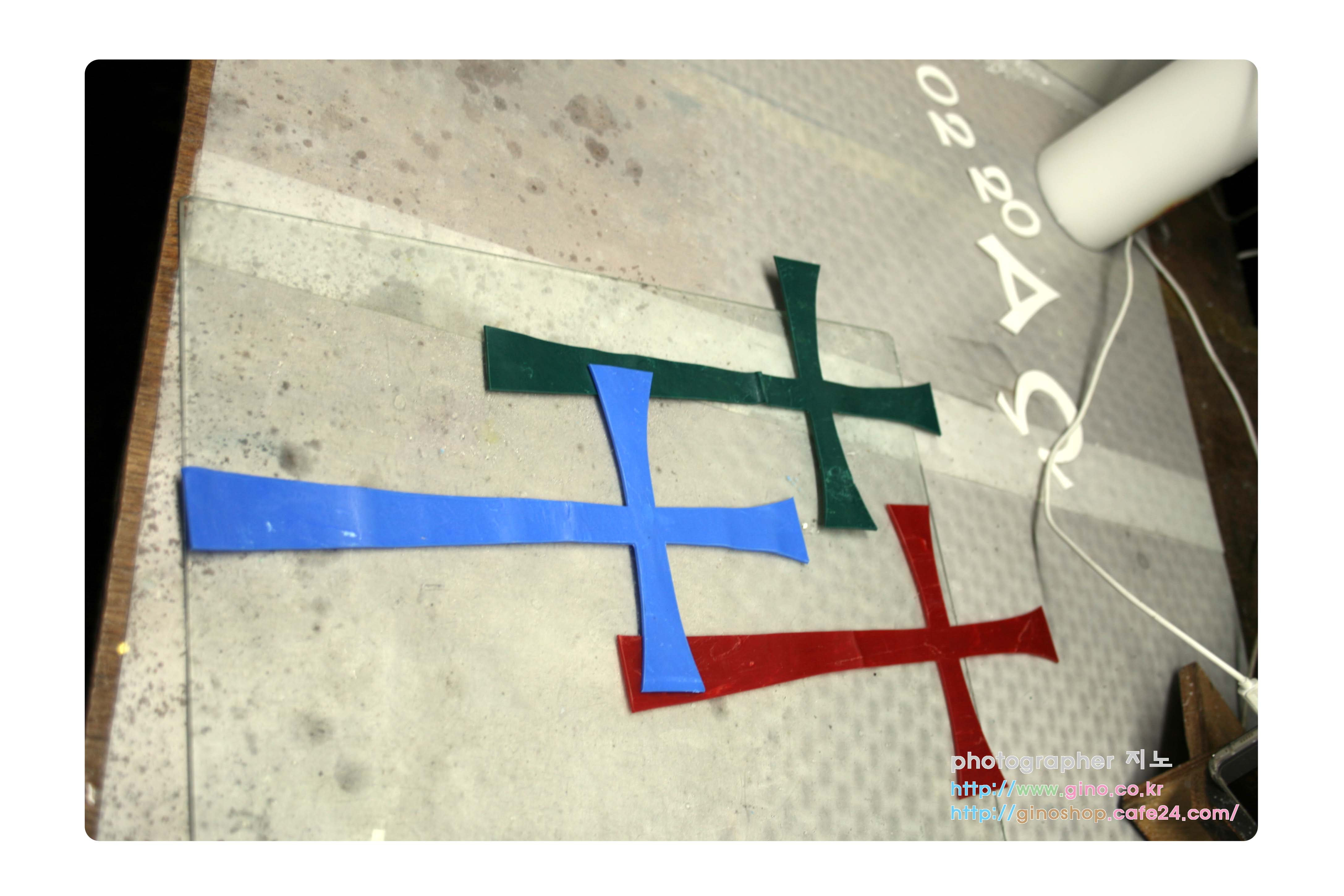 본작업에 들어가게 됩니다. 도안을 프린트후 화이트 캔들 왁스에 마킹 작업으로 2020 숫자와 부활 알파 오메카 샘플 재료를 만들게 됩니다. 다만 전체 적인 색상의 구도가 정해 지지 않고 실물로 만들어 도안을 붙여 나가면서 그때 그때에 따라서 어울리지 않는 부분은 고치고 바꾸어야 할부분은 수정을 해 나가면서 진행이 이루어집니다. 앞전에 알려 드렸듯이이번해 빠스카 양초에 들어가는 숫자는 매년 바꾸어서 변화를 드린다고 했는데 이번 2020 글씨 모양을 컷팅한 사진으로 약간 기술어진 글씨 모양으로 작년과는 또 다른 느낌을 줍니다. 또한 알파 오메가 부분도 제 주관적인 느낌이지만 작년 보다는 더 마음에 들어서 좋은듯합니다. 그리고 십자가의 색상은 가지고 있는 색상 캔들 왁스 시트중에서 초록 파랑 빨강으로 일단 컷팅 재료를 만들어 양초에 각각의 색상 십자가로 배치후 대조를 하면서 결정을 해야 합니다. 다만 완전히 다른 색으로 갈수도 있습니다. 또 어떻게 진행 할지를 골똘히 생각을 하며,,,,,,,,,,,,,,,..........................................................................