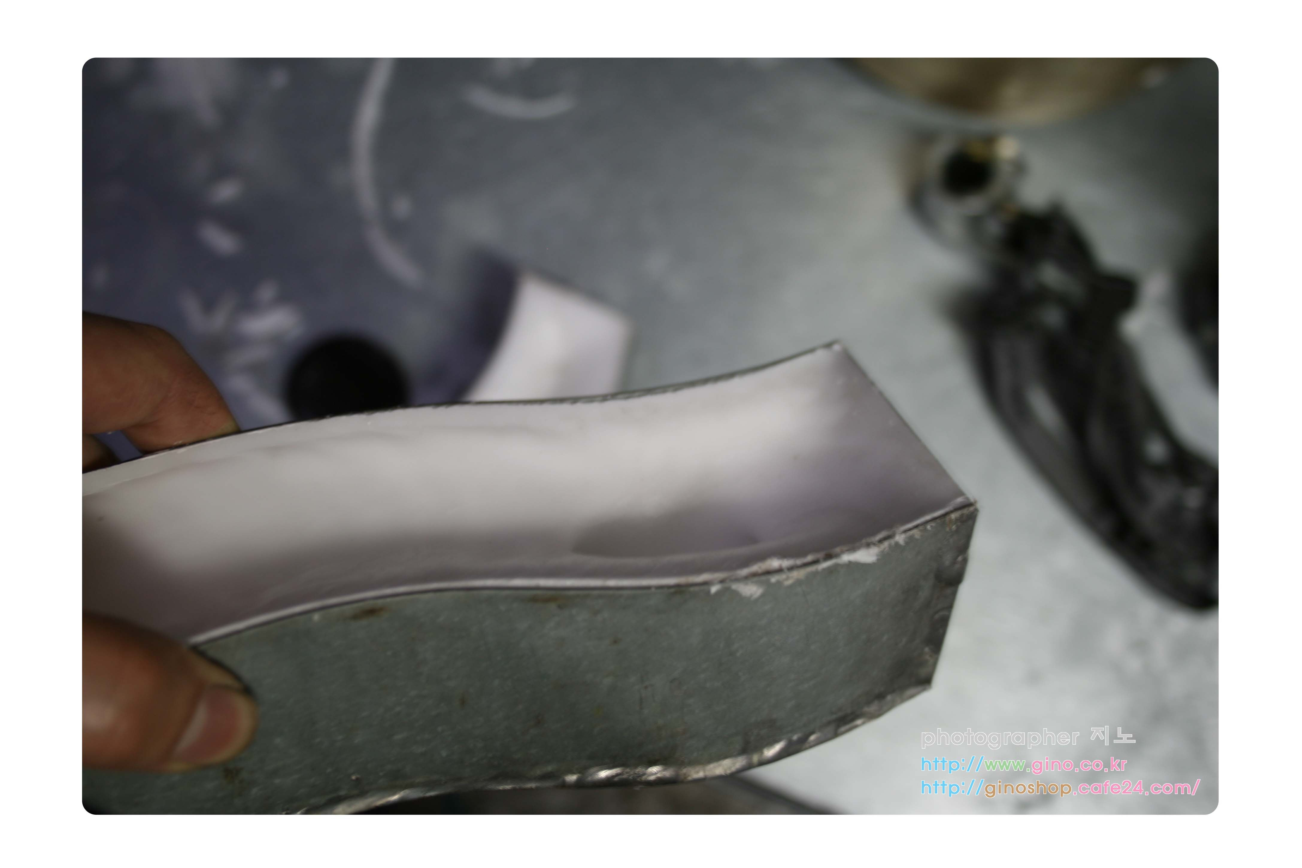 저희가 가지고 있는 사각 금형에서 뽑으면 모서리 부분이 각이져서 나옵니다. 각이 져 있는 부분으로 만들어서 걸거치는 부분이 되어 뽕부분을 부드럽게 굴곡지도록 히터를 만든다음 2개를 두고 보니 보니 모서리 부부닝 굴곡진 부분이 시각적으로 더욱 보기가 좋습니다.