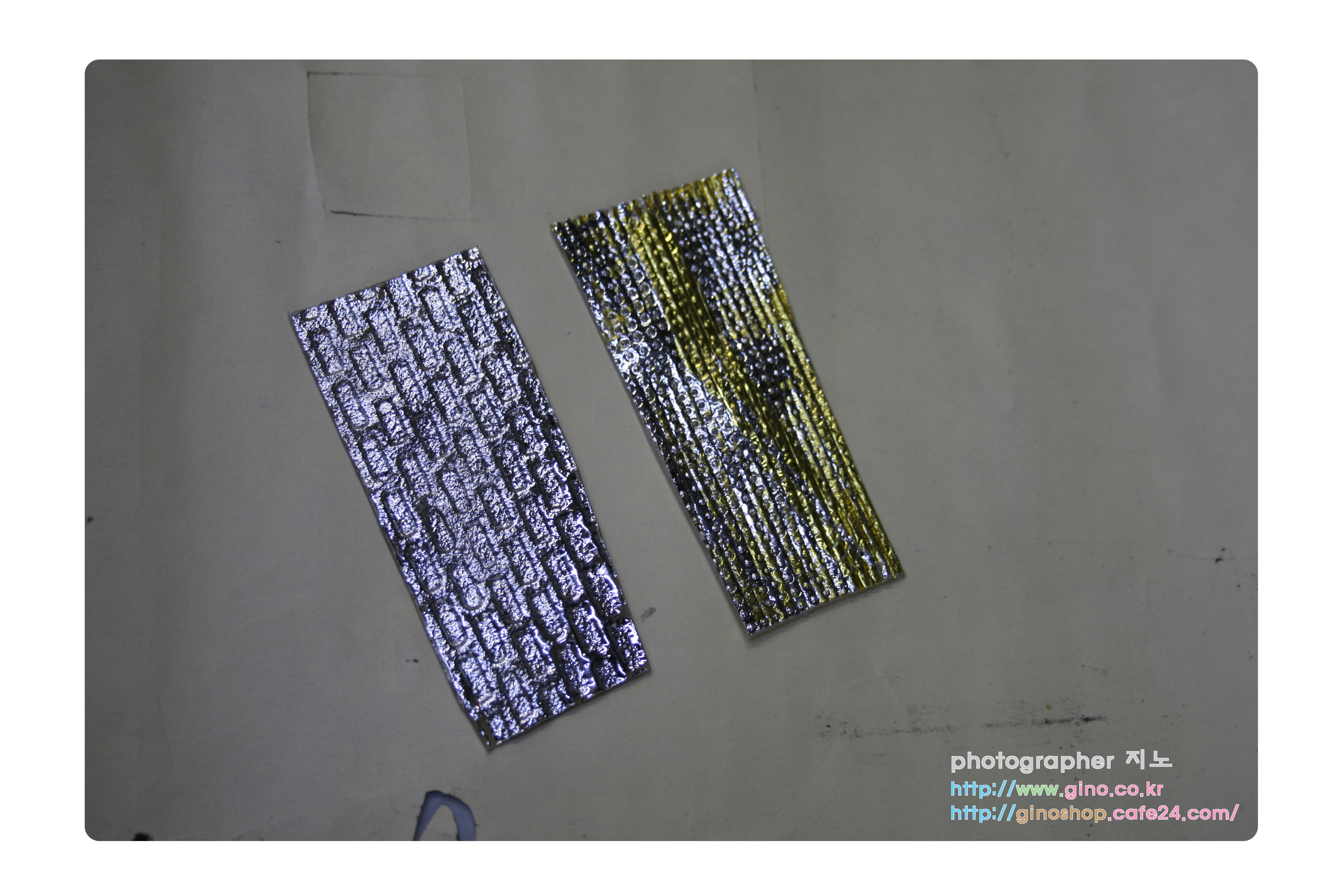 매번 새로운 작품을 만들때 마다 생각하지 않을수 없는 부분인 장식 재료의 선택이 있습니다. 저희가 처음 금박을 초에 입힐때만해도 구식 장비로 만들수 있는 작업의 능율성 및 실패율로 작업의 시간이 많이 걸렸습니다. 그래도 완성된 제품은 독일초에 비해서는 퀄리티 디자인 면에서는 다소 떨어지기는 하지만, 그래도 자체적으로 만들수 있는 가능성을 보고 계속 투자 개발로 지금은 많이 개선이 되었다고 생각을 합니다. 그동안 이번 이벤트 캔들 외에 앞으로 만들어질 양초에 활용할 몇가지 박 샘플 이미지 작업 중에서 2가지를 선정을 하여 금형을 신청을 해서 샘플을 만들었습니다. 벽돌 느낌의 박과 점 라인 박인데 간격을 다소 띠운 느낌이 괸찮아서 이번 이벤트 하트 양초의 상단 테두리에 이 점 라인 왁스 시트도 적용을 해 볼려고 합니다. 사용해 볼수 있는 옵션이 하나씩 준비가 되고 있습니다.