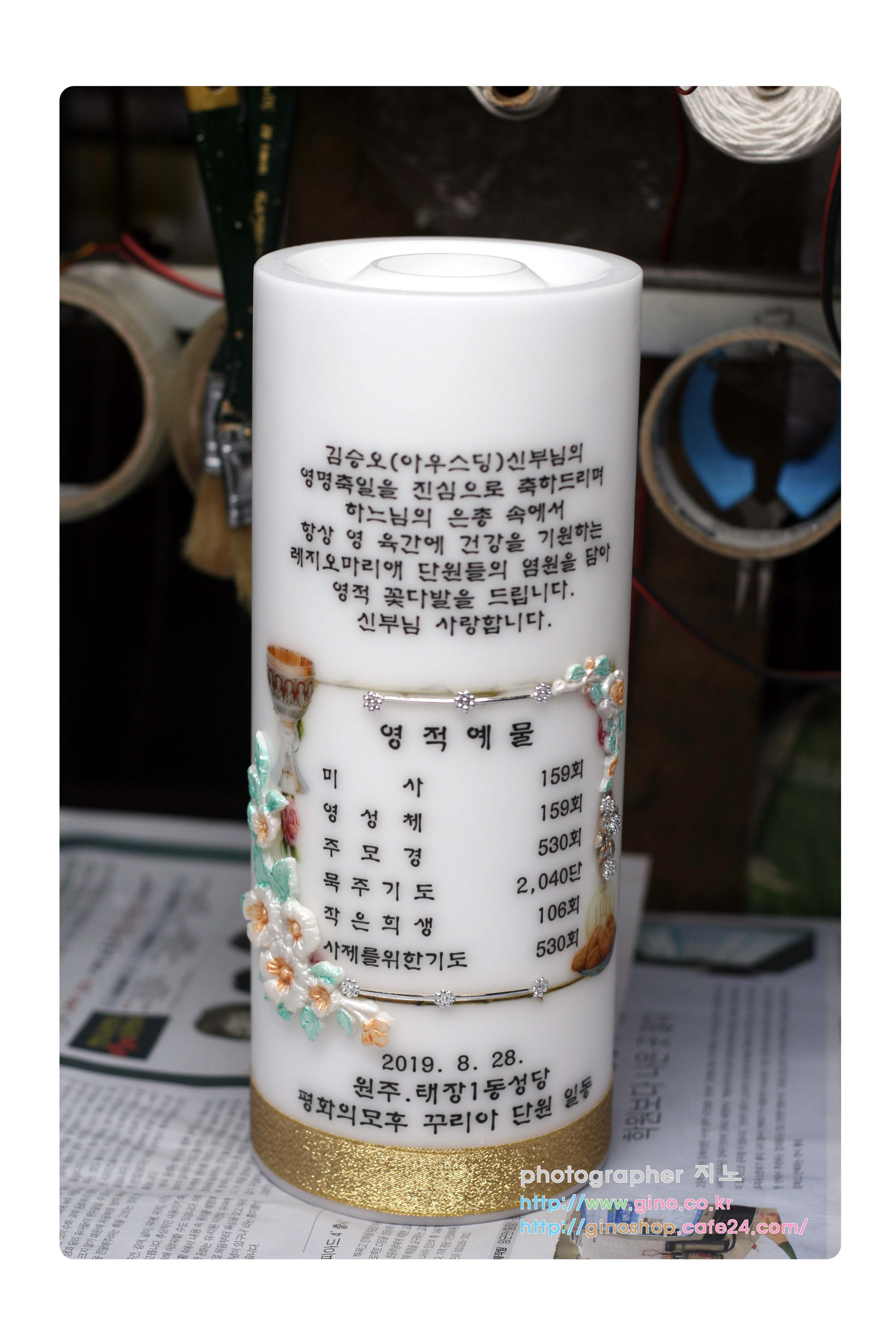 원주 태장1동성당 평화의모후구리아에서 김승오(아오스딩)신부님 영명축일 맞이하여 정성스런 영적예물을 담아 주문 제작을 하신 캔들 입니다.