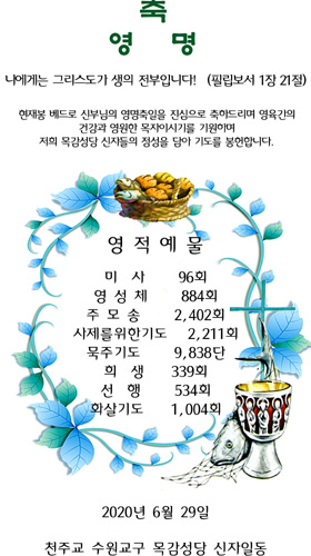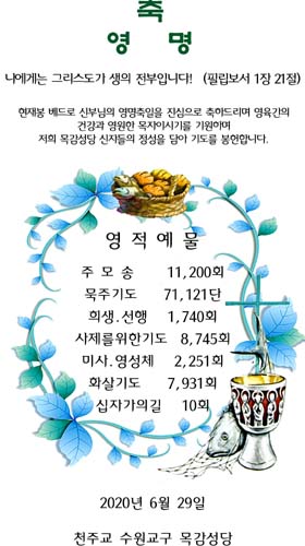 2020년 6월 29일 천주교 수원교구 목감성당 신자일동