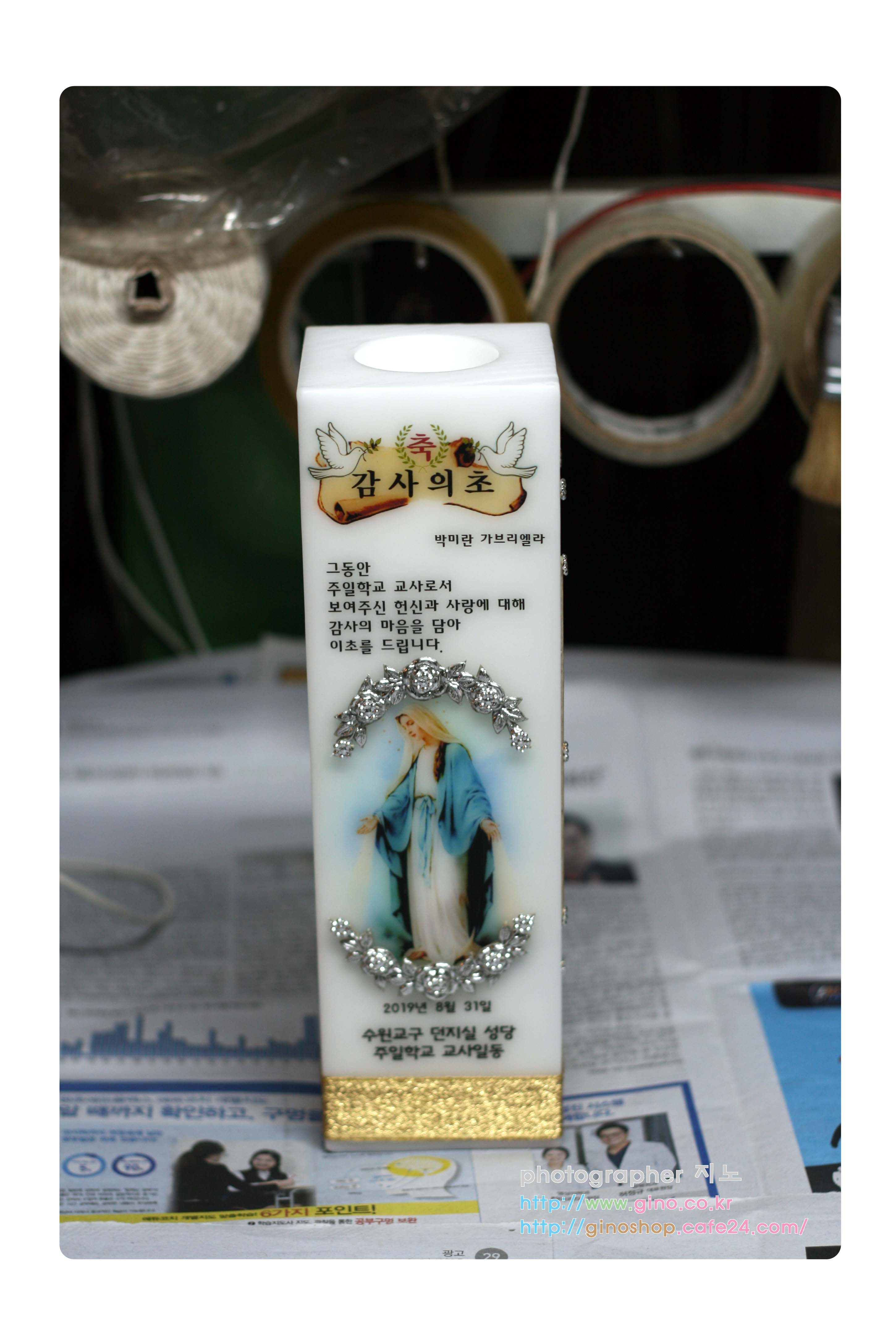 던지실성당 주일학교 교사일동에서 그동안 수고에 감사의 내용을 담아 주문 제작을 하신 캔들입니다.