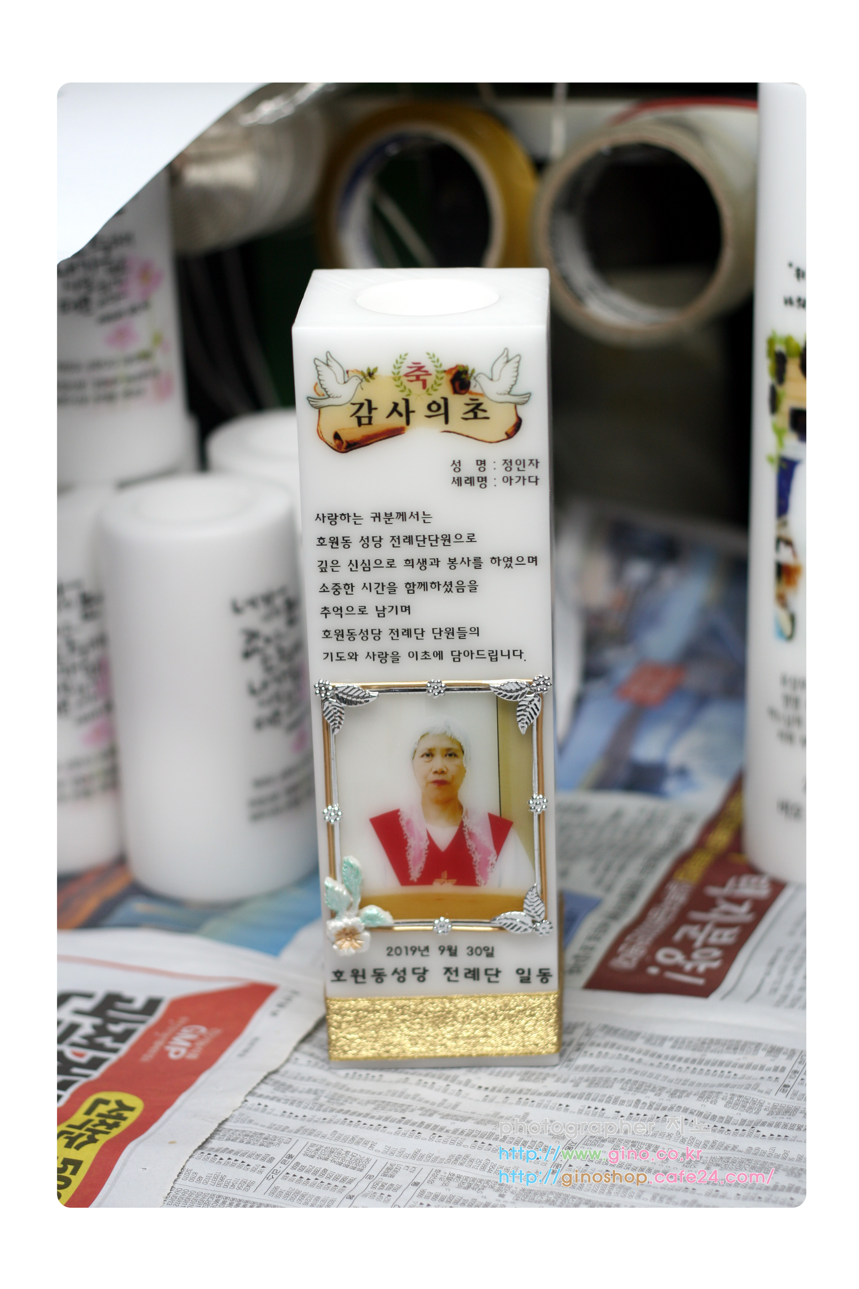 호원동성당 전례단일동 분들의 감사의 내용을 담아 주문 제작을 하신 캔들 입니다.