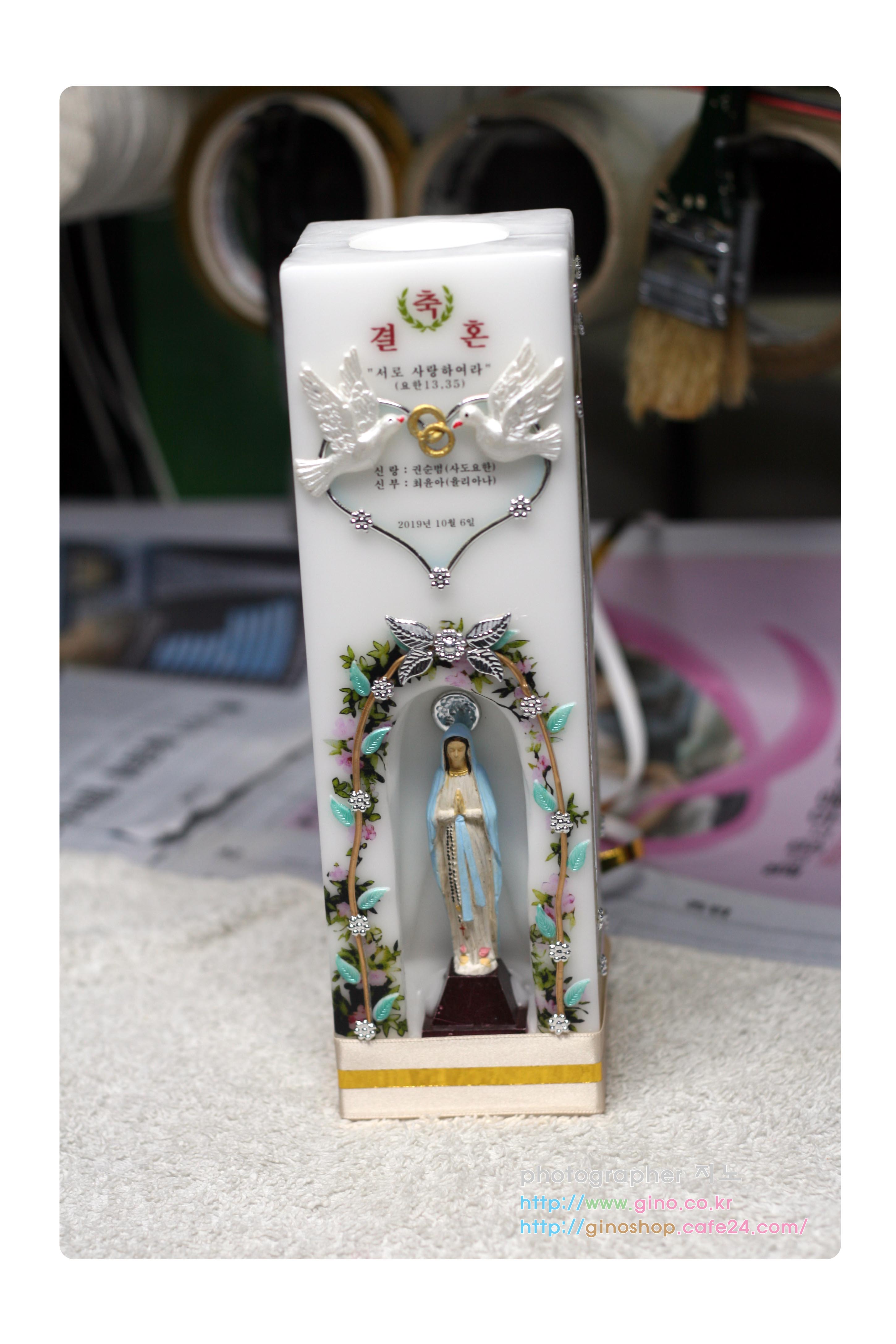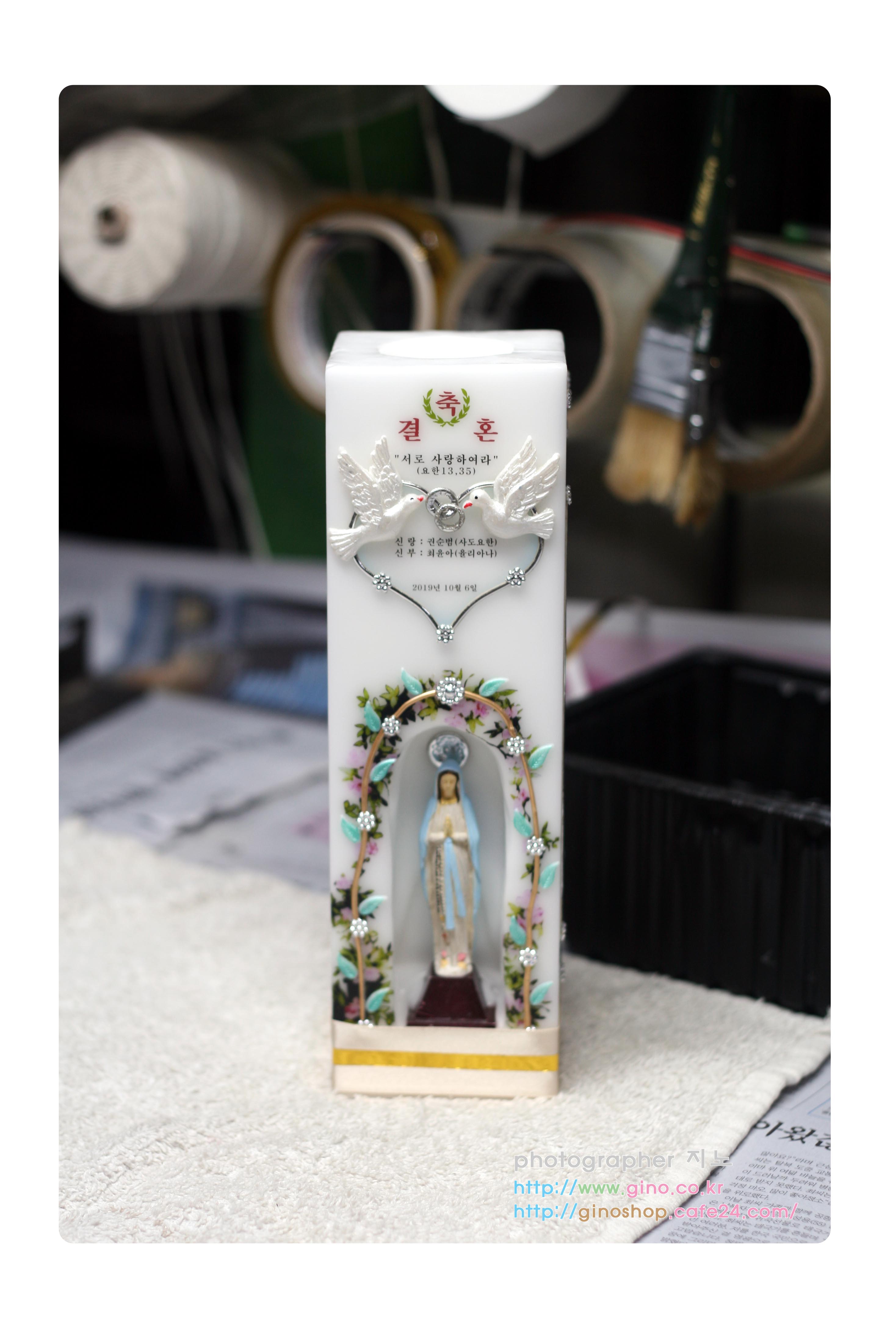 권그리시아수녀님께서 결혼 선물로 주문 제작을 하신 양초 캔들입니다.