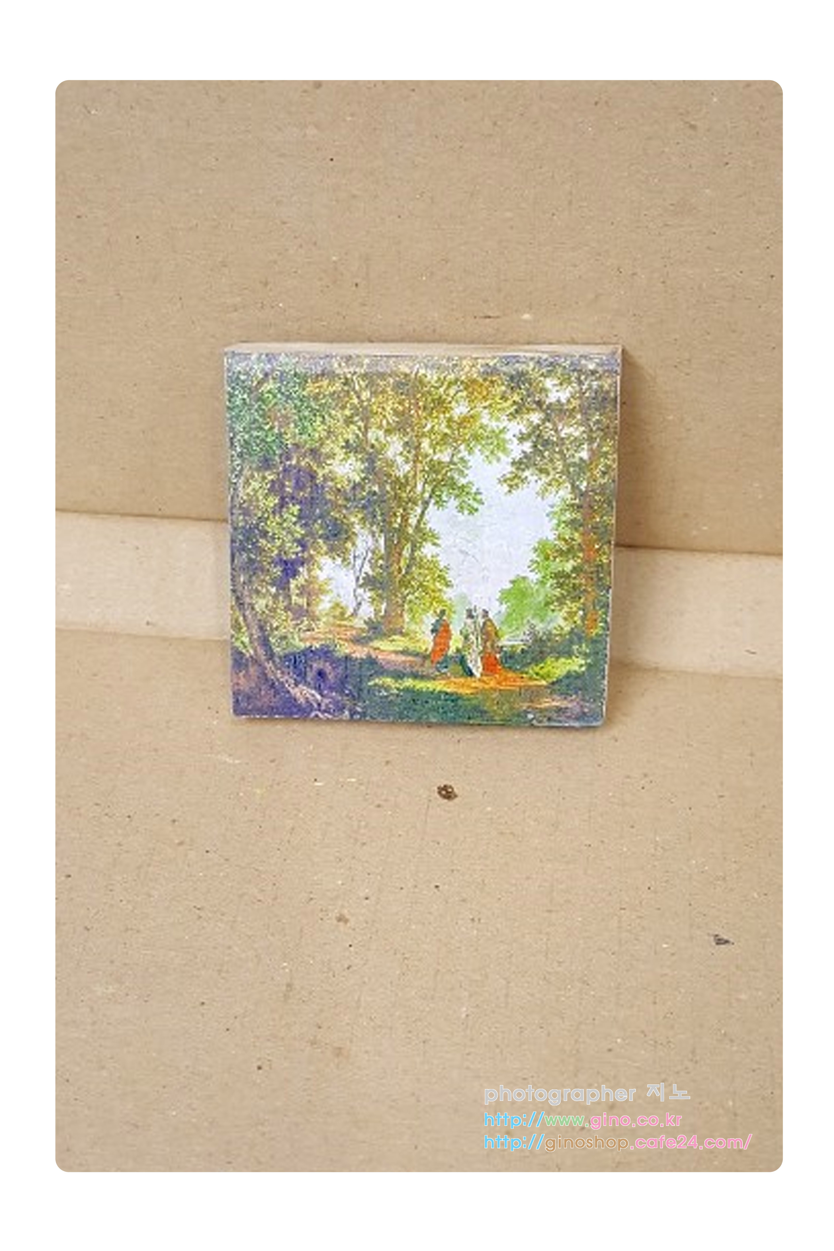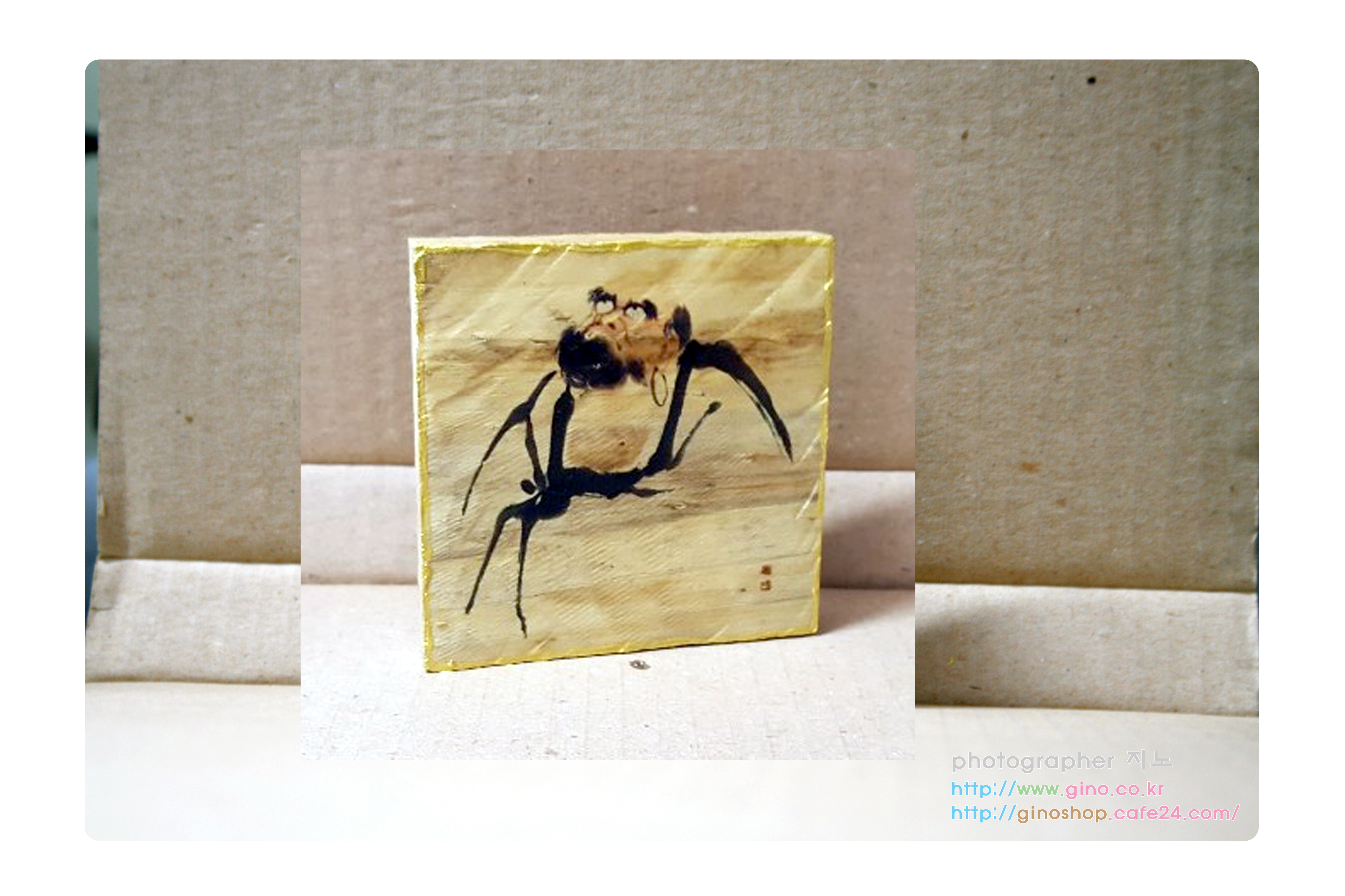 그 다음 나무 액자 테두리에 금색으로 채색을 해주닌 훨씬 보기가 좋습니다.