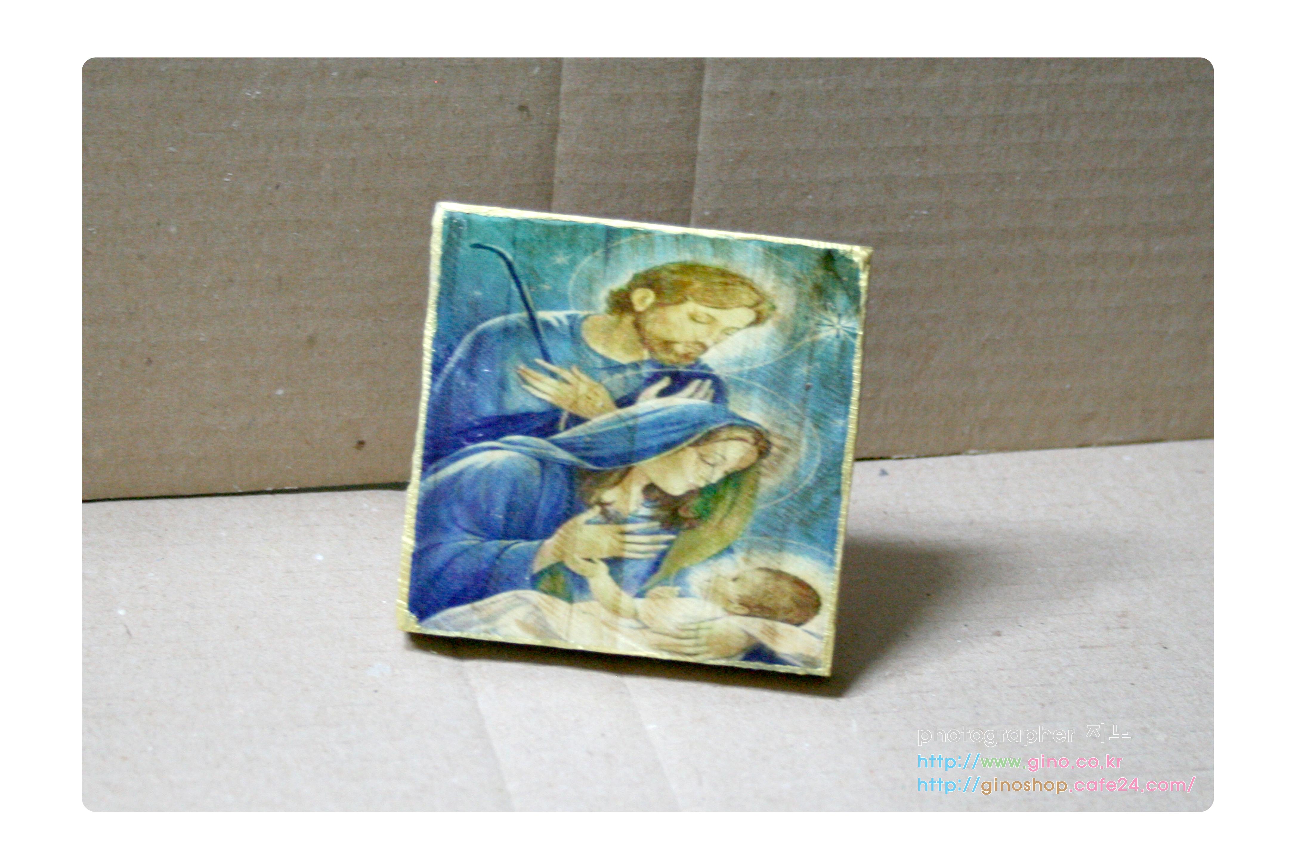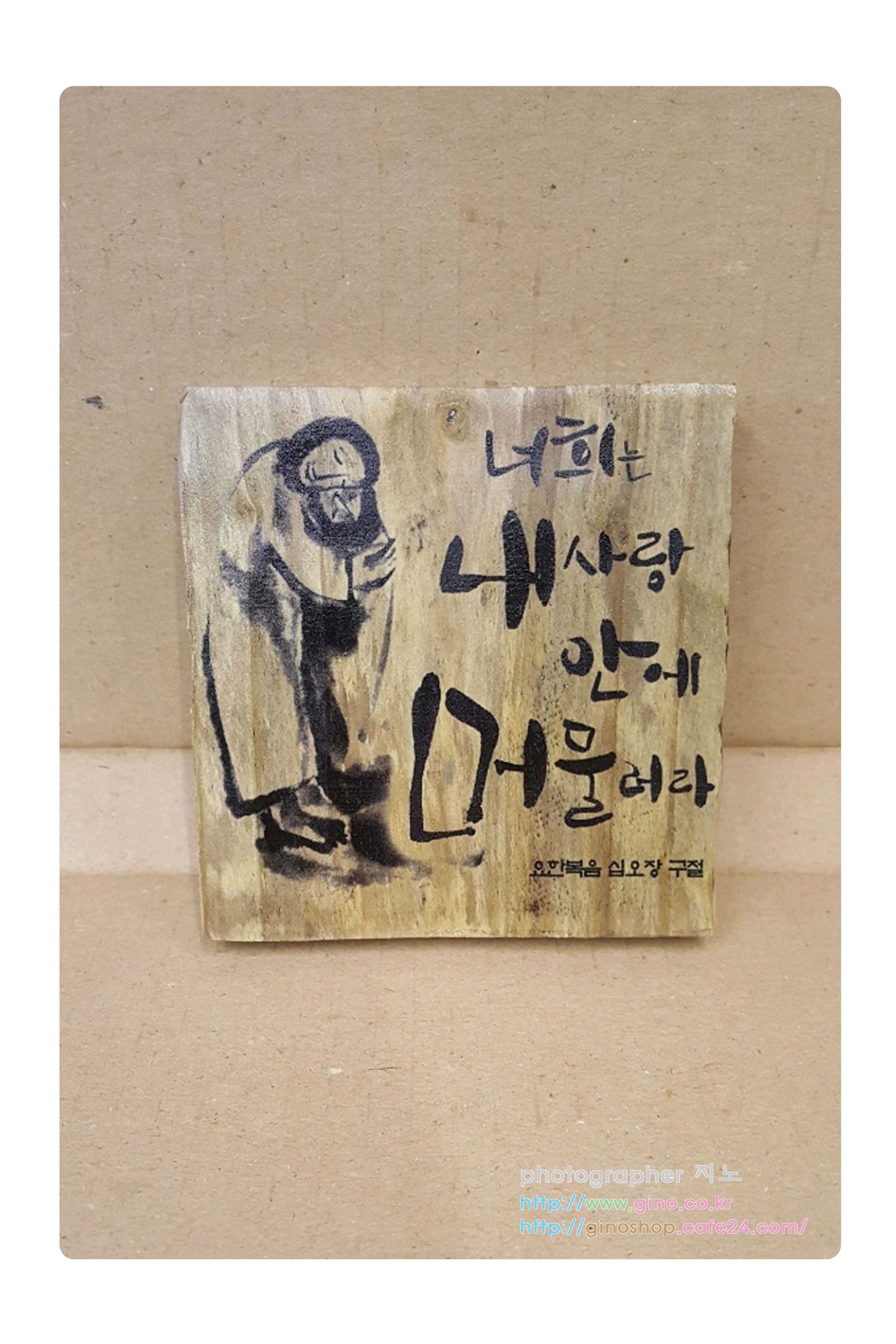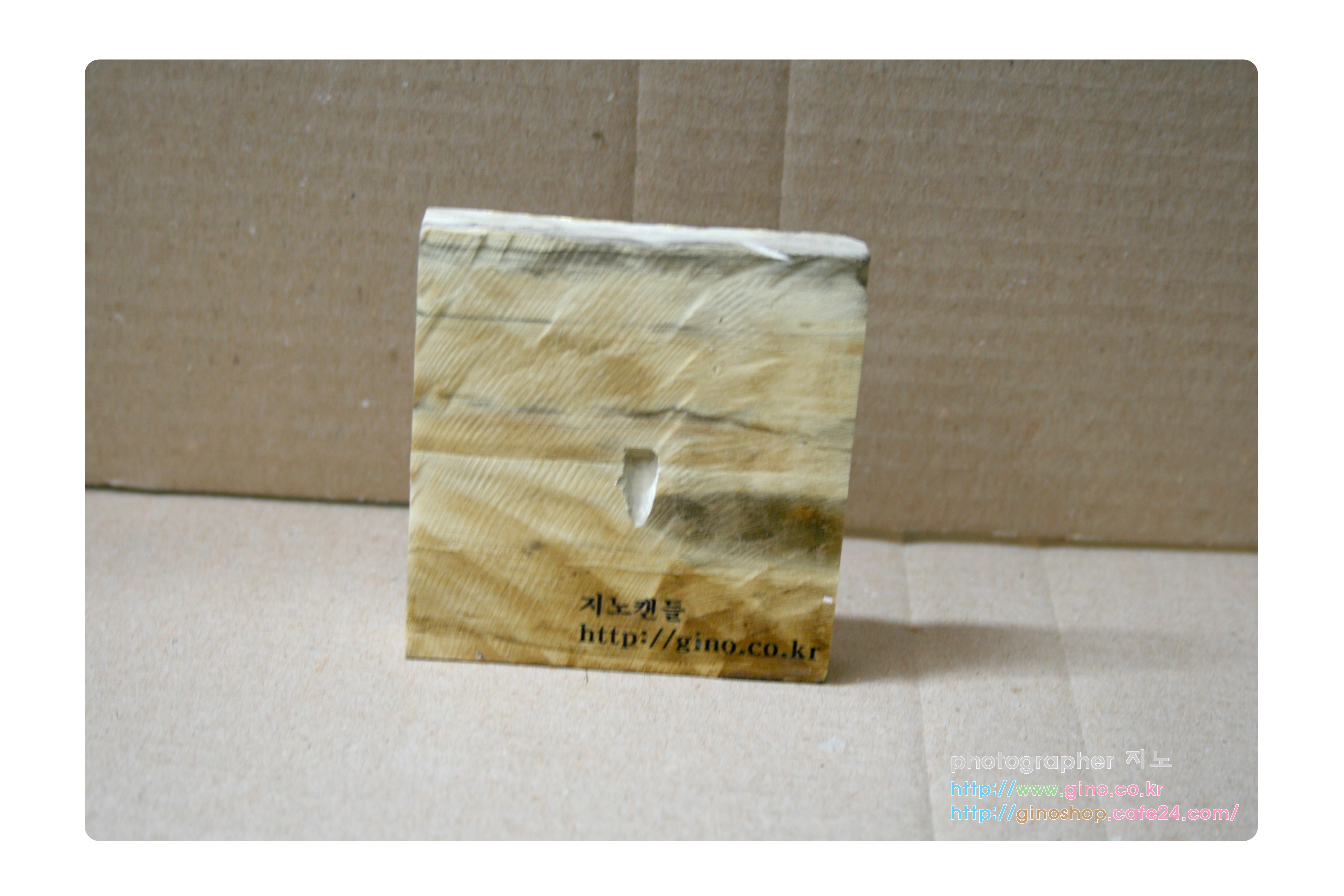 그래서 뒷면 지노캔들 글씨 부분을 중앙으로 배치를 하가 하단에서 1cm높이 구멍을 뚤어서 마무리 작업으로 최종 미니 나무 액자 제품의 구성이 완성이 됩니다. 조그마하나깐 어느 곳이나 인테리어 소품으로 괸챃을꺼 같다는 생각이 들어서 만들어 보았습니다. 계속 색다른 이미지나 디자인 생각이 나면 만들어서 소소이 선보이도록하겠습니다.