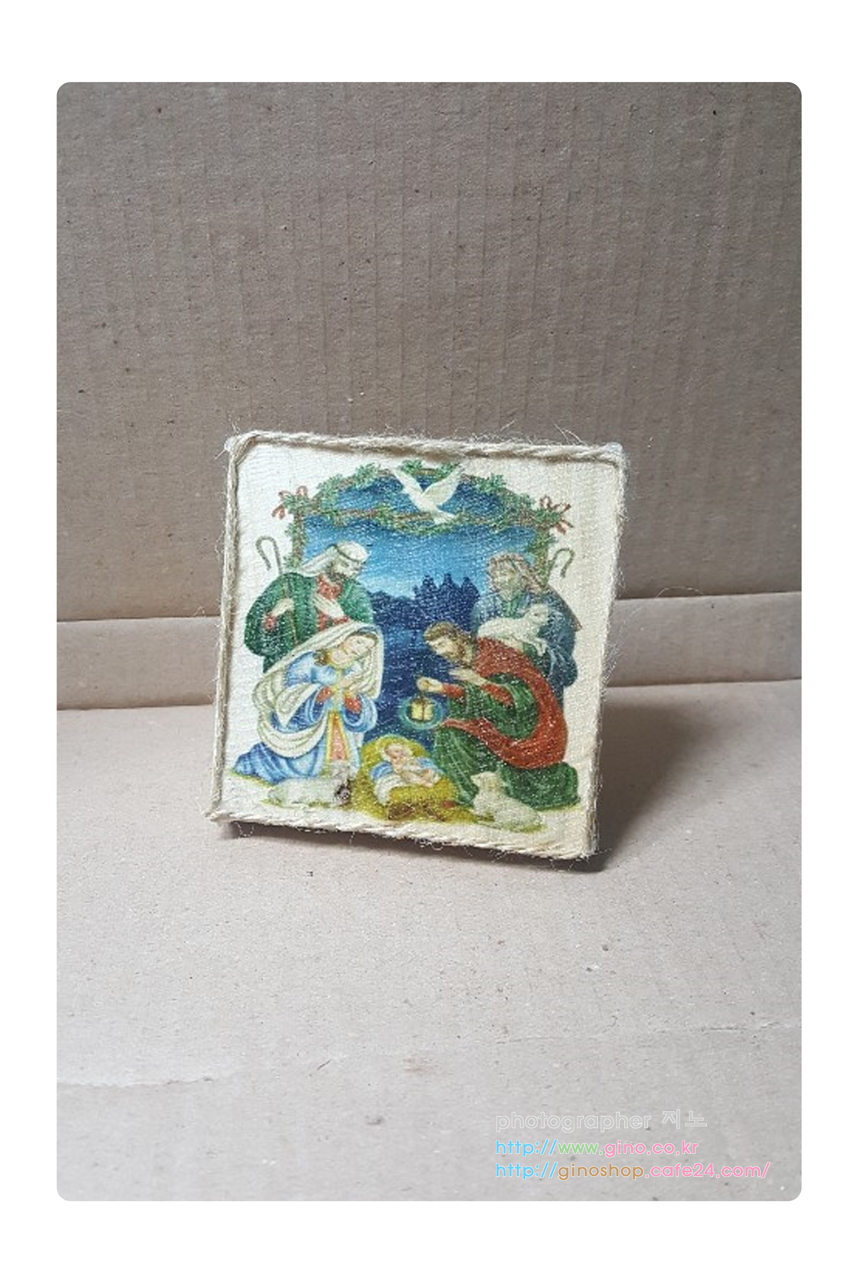 테두리 부분을 노끈으로 적용해본 미니 나무 액자 성탄 ver입니다.(노끈은 접착이 안되서 제거를 하게 됩니다)