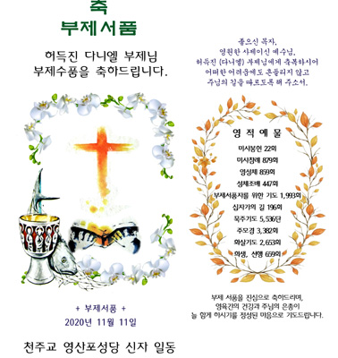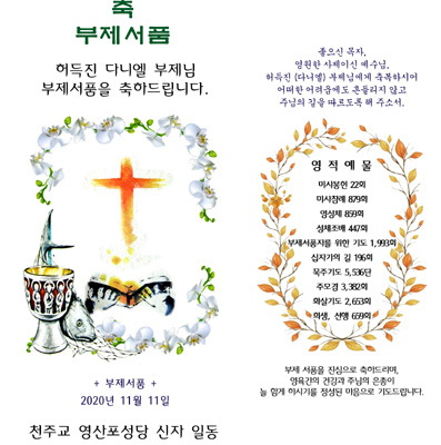 Posted at 2020. 11. 14. 18:01 | Posted in 사제부제서품기념초/사제부제서품기념초 폼|