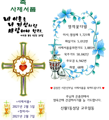 뒷부분 영적꽃다발 "번"으로 된부분 "회"로 수정 해주시고 하트 밑에 내용 마지막부분 기도드립니다로 수정