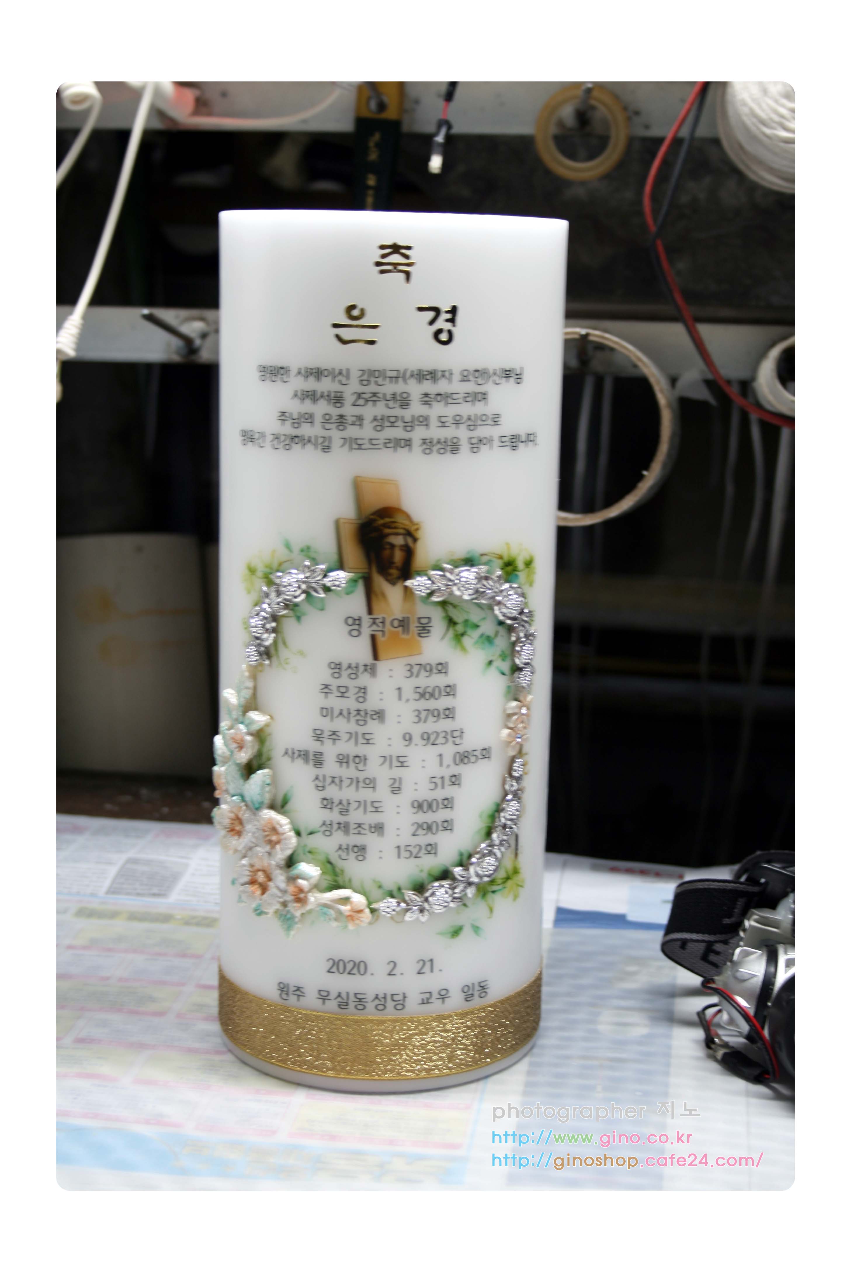 원주 무실동성당에서 김민규(세례자 요한)신부님 사제서품 25주년을 맞이하여 정성스런 영적예물을 담아 주문 제작을 하신 축은경 양초 캔들 입니다.