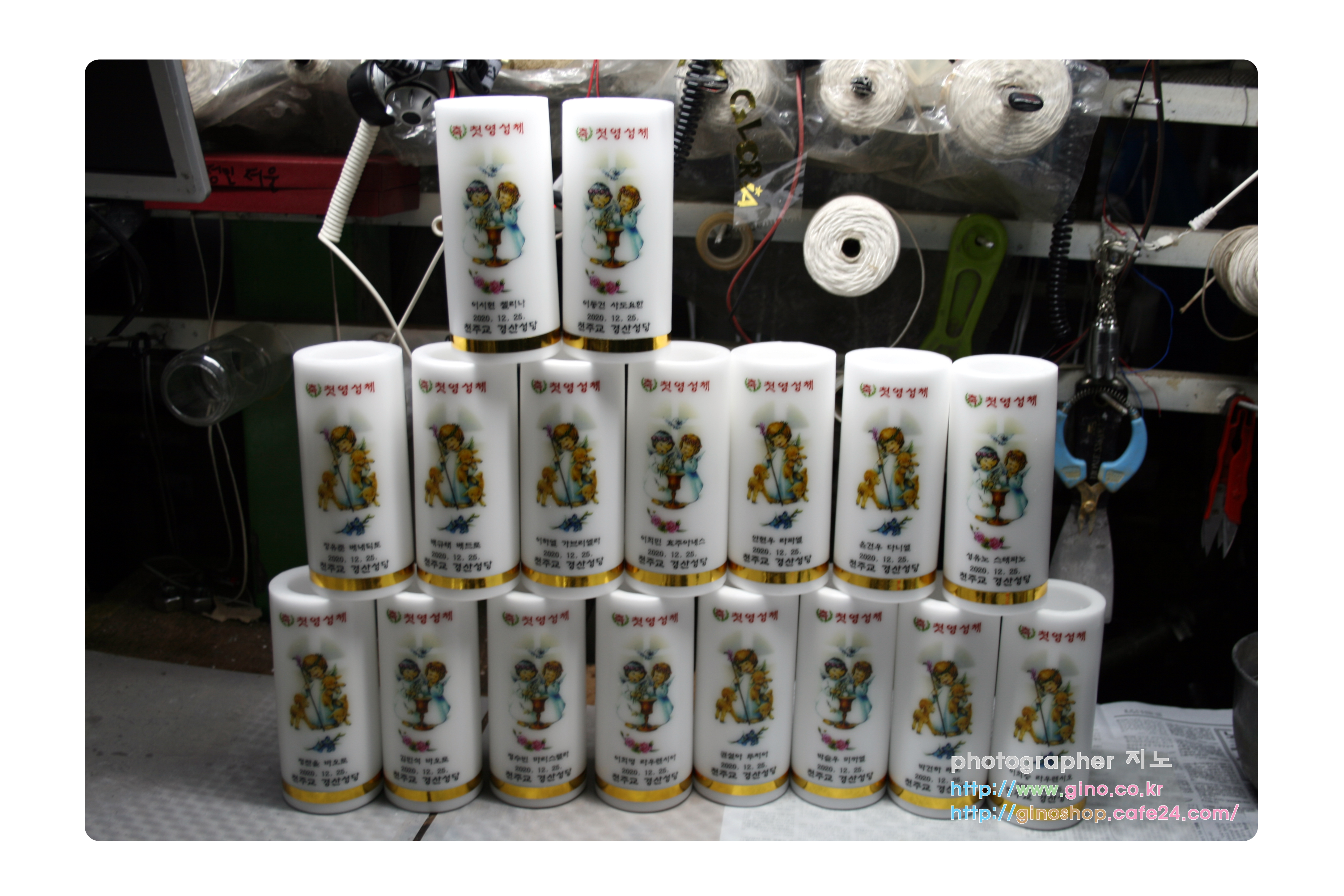경산성당에서 첫영성체 행사때 사용하기 위해서 주문 제작을 하신 양초 캔들 입니다.