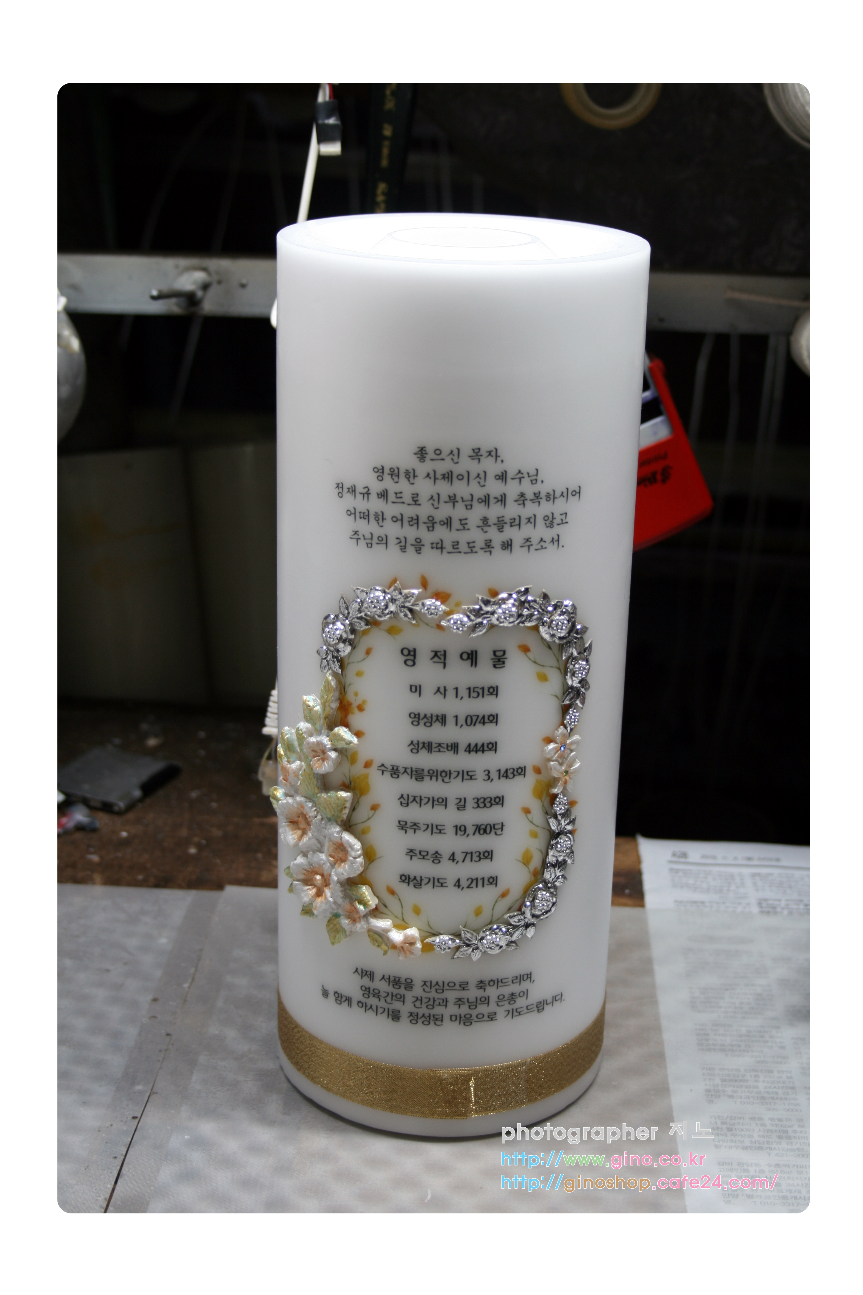 신봉동성당에서 정재규 베드로 신부님 사제서품 축하 선물로 정성스런 영적예물을 담아 주문 제작을 하신 양초 캔들 입니다.