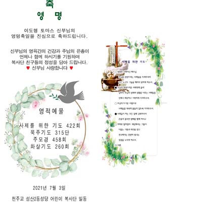 이도행 토마스 신부님의 영명축일을 진심으로 축하드립니다.