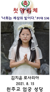 | 서천동성당 첫영성체 세례성사 초안 (0) | 2021.08.03 |
