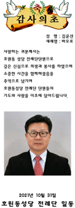 사랑하는 귀분께서는 호원동 성당 전례단단원으로 깊은 신심으로 희생과 봉사를 하였으며 소중한 시간을 함께하셨음을 추억으로 남기며 호원동성당 전례단 단원들의 기도와 사랑을 이초에 담아드립니다.