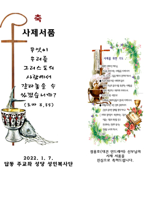 Posted at 2021. 12. 16. 17:40 | Posted in 사제부제서품기념초/사제부제서품기념초 폼|