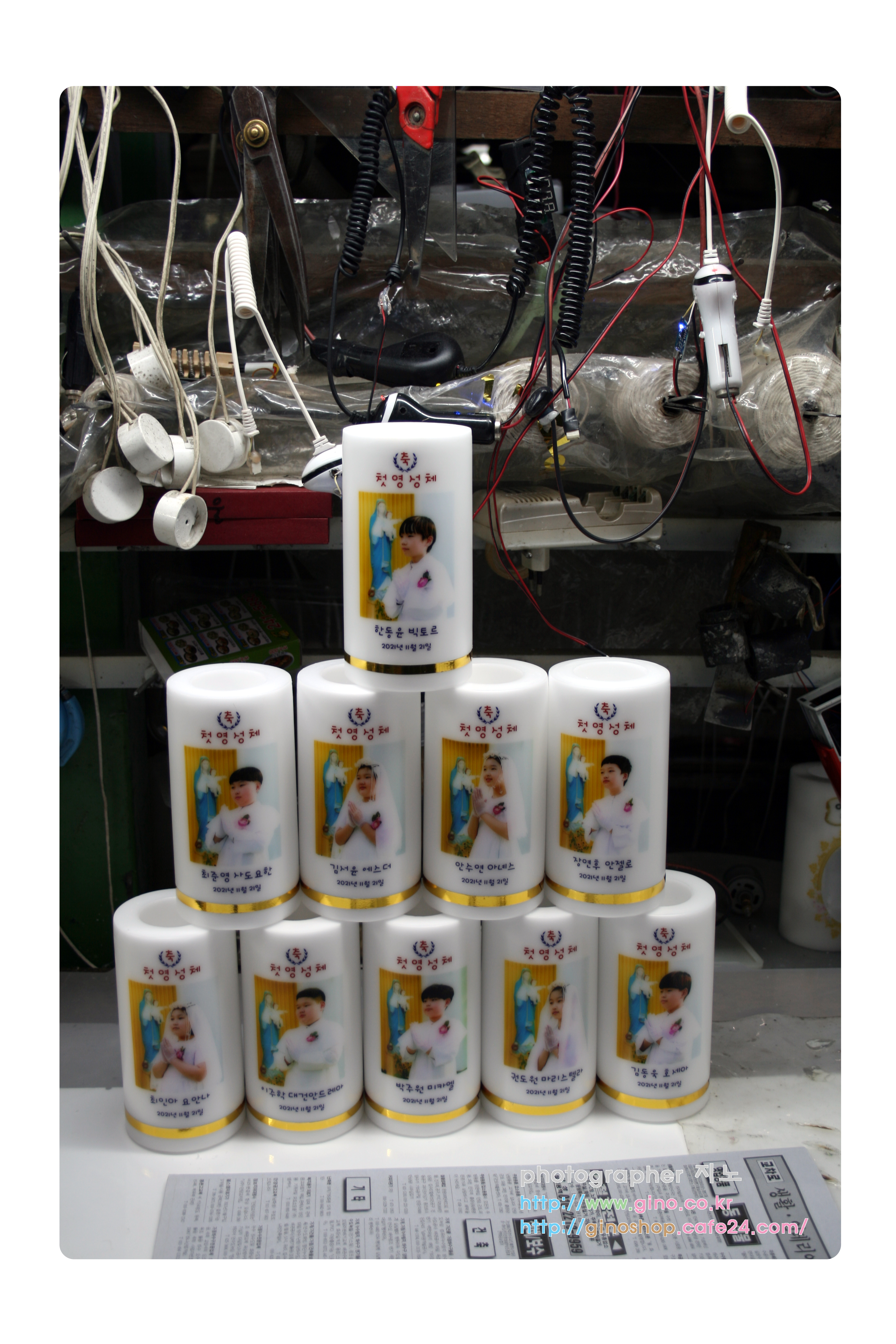 수원교구 여주성당에서 첫영성체 행사때에 사용하기 위해서 주문 제작을 하신 양초 캔들 입니다.