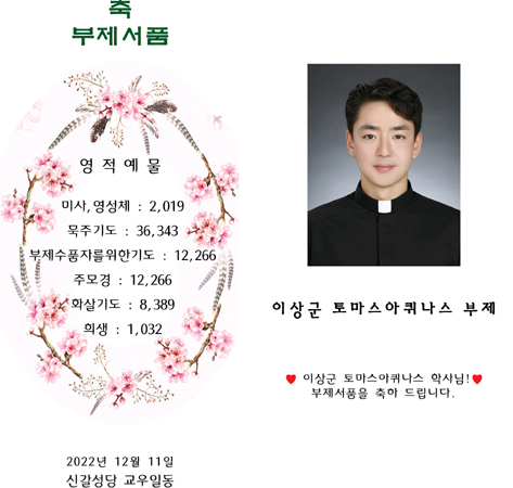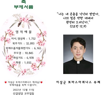 Posted at 2022. 12. 3. 09:36 | Posted in 사제부제서품기념초/사제부제서품기념초 폼|