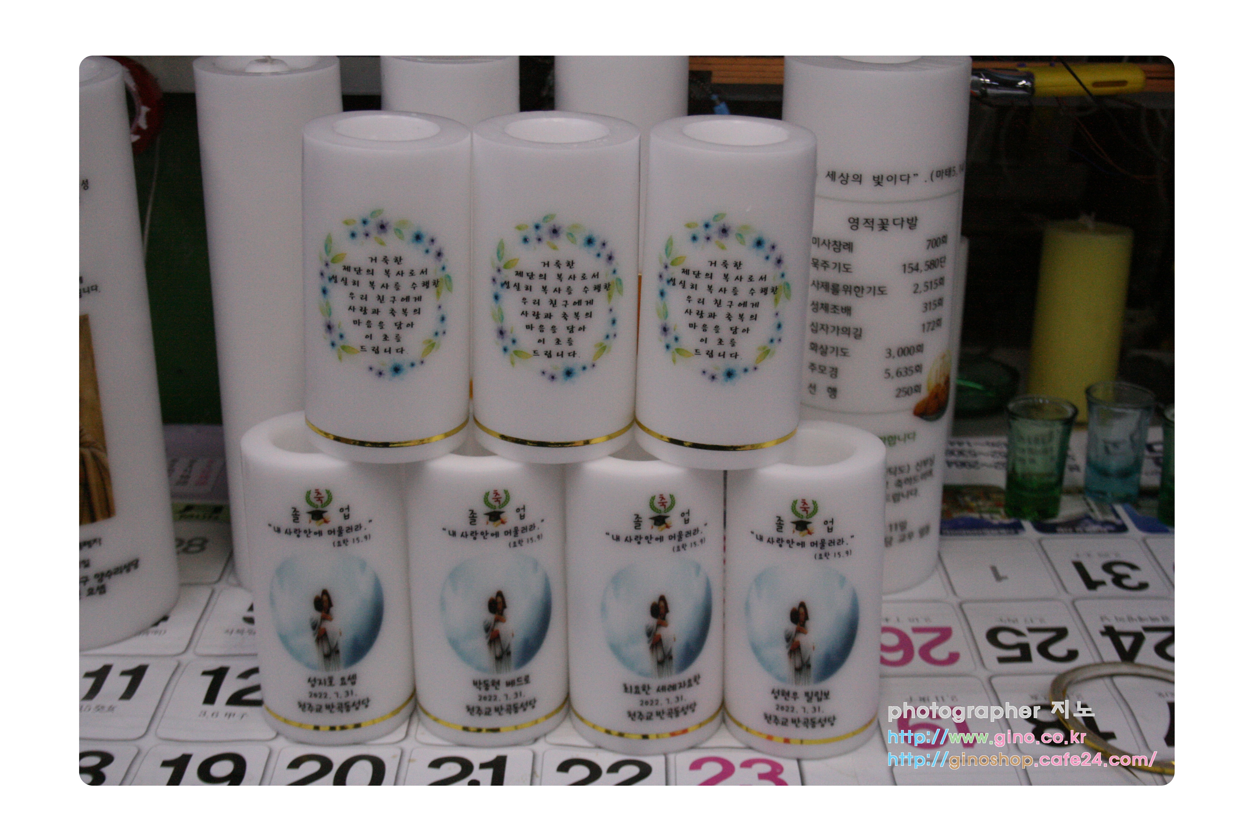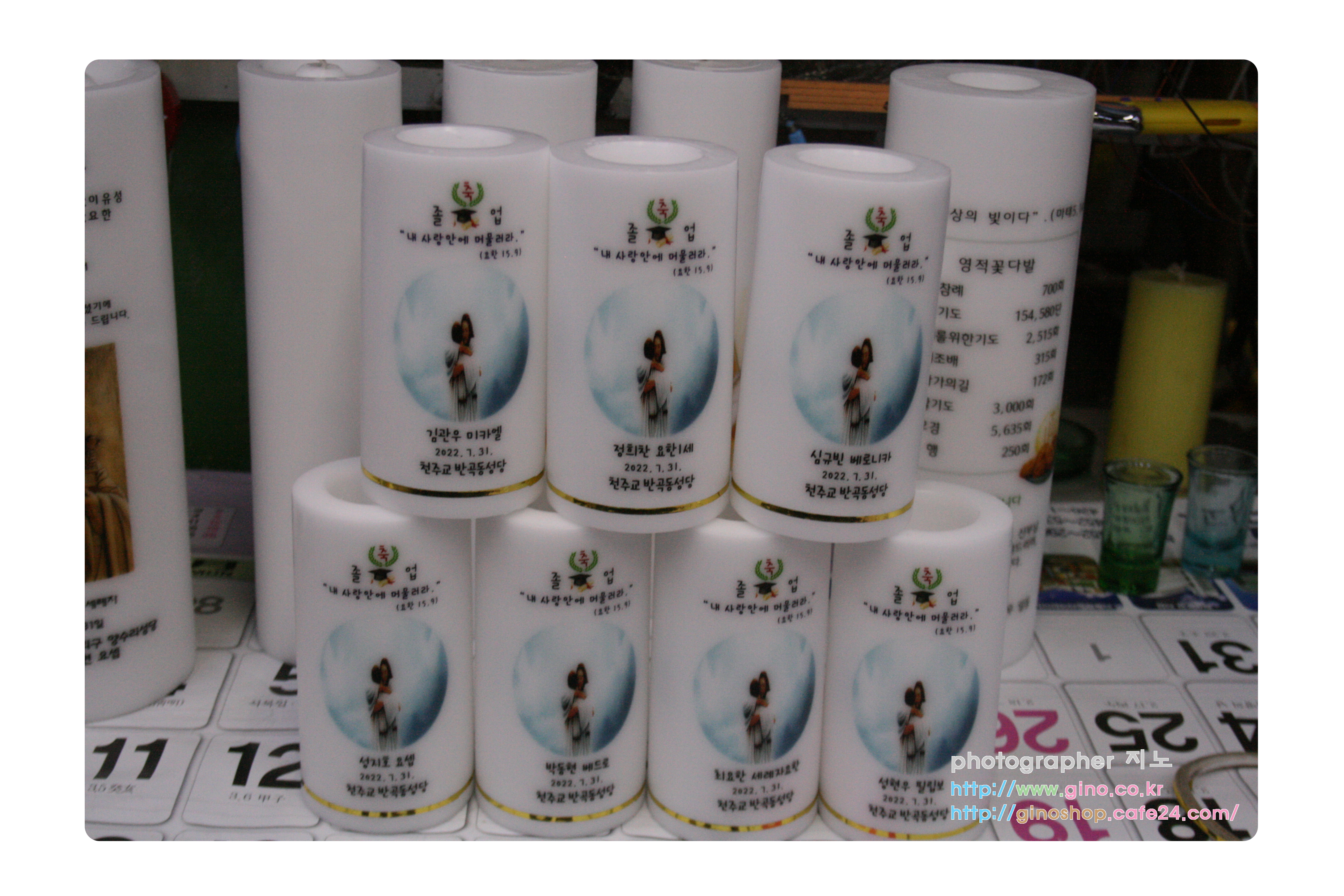 반곡동성당에서 축졸업 행사때에 사용하기 위해서 주문 제작을 하신양초 캔들 입니다