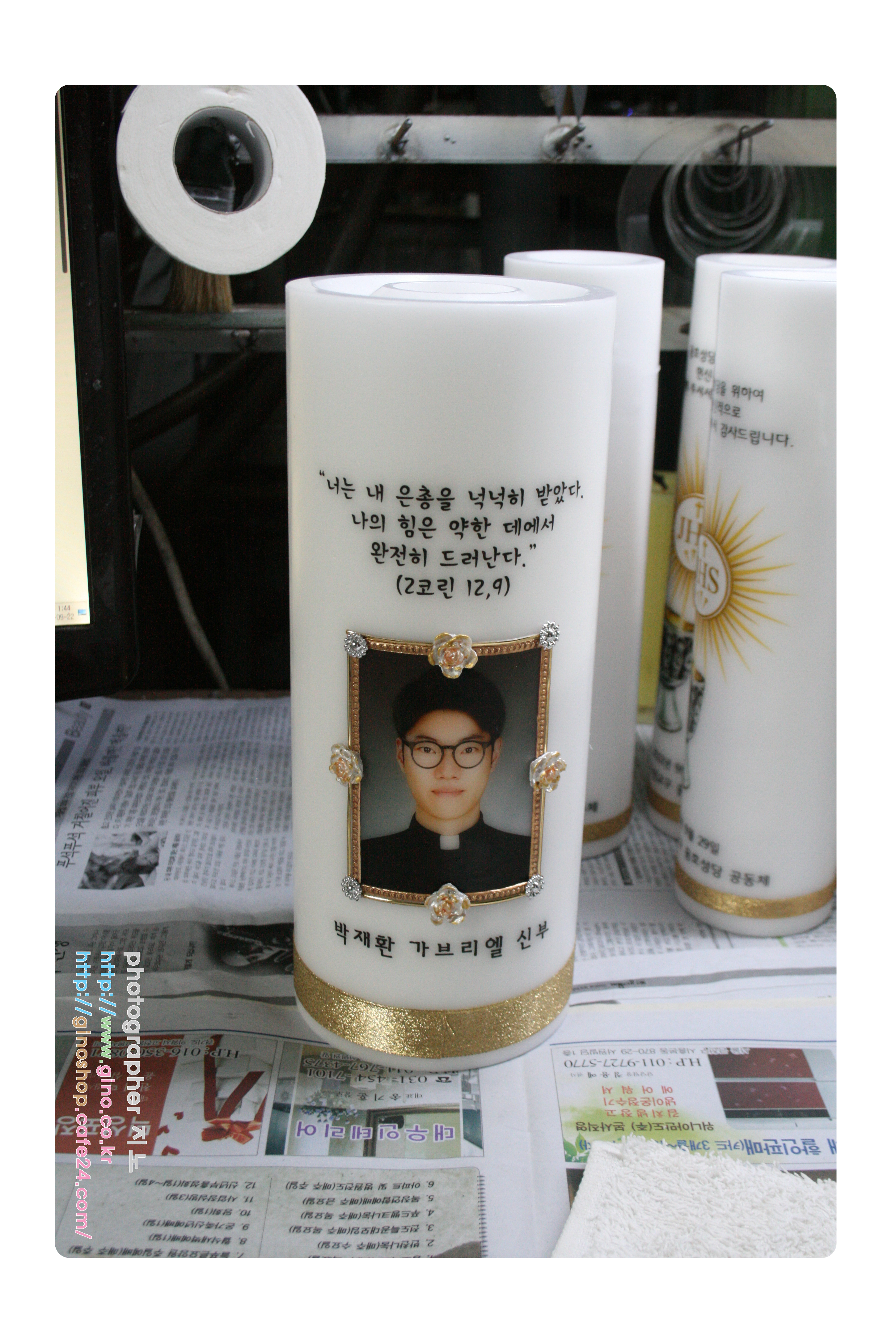 신갈성당에서 박재환(가브리엘)신부님의 영명축일 맞이하여 정성스런 영적예물을 담아 주문 제작을 하신 양초 캔들입니다.