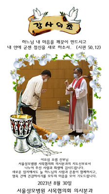 서울성모병원 사목협의회 의사분과의 지도신부로 함께하시는 동안 나누어 주신 사랑과 희생에 감사드립니다.